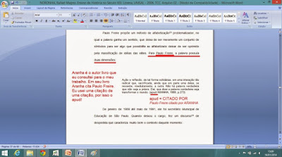 trabalho também tem que fazer referência bibliográfica como uma citação textual